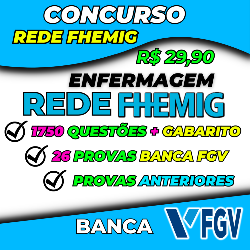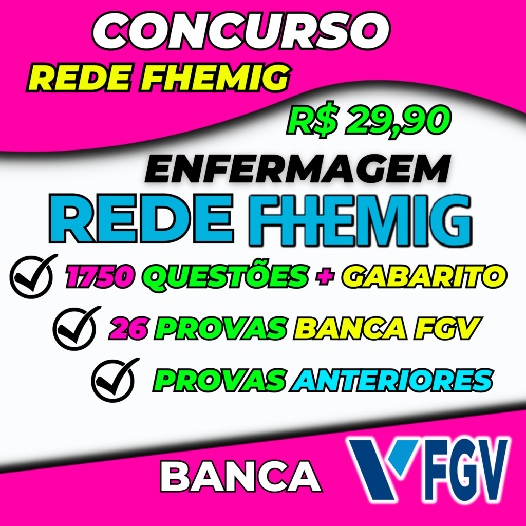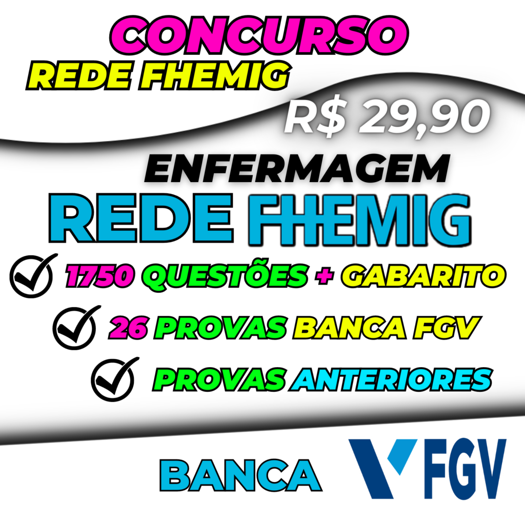 KIT APOSTILA PARA APROVAÇÃO CONCURSO DA REDE FHEMIG ÁREA DA ENFERMAGEM COM 26 CADERNOS DE QUESTÕES DA BANCA FGV + GABARITO